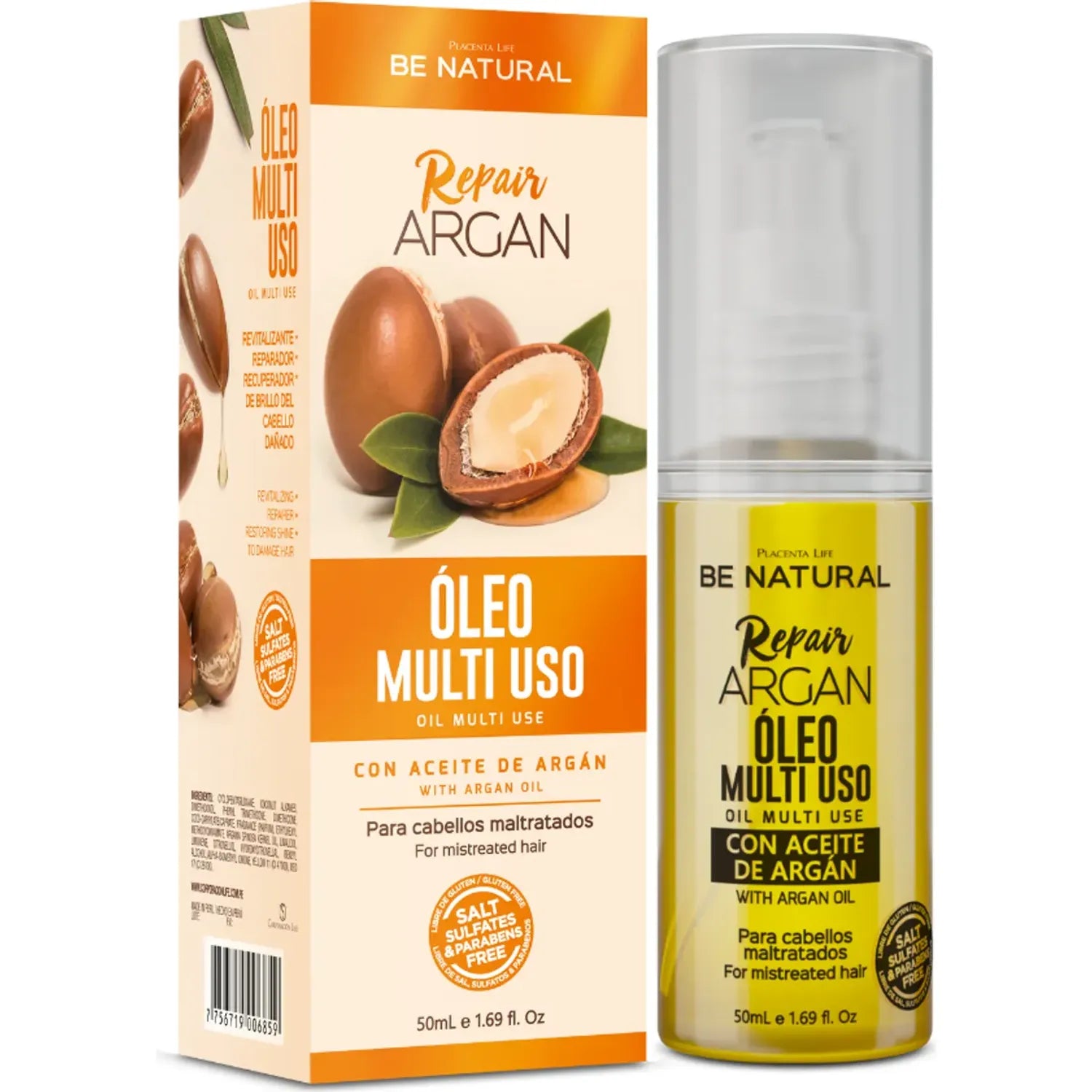 Aceite Reparador Argán 50 ml | Placent Life | Multiuso para reparar, nutrir y dar brillo con aceite de argán y vitamina E