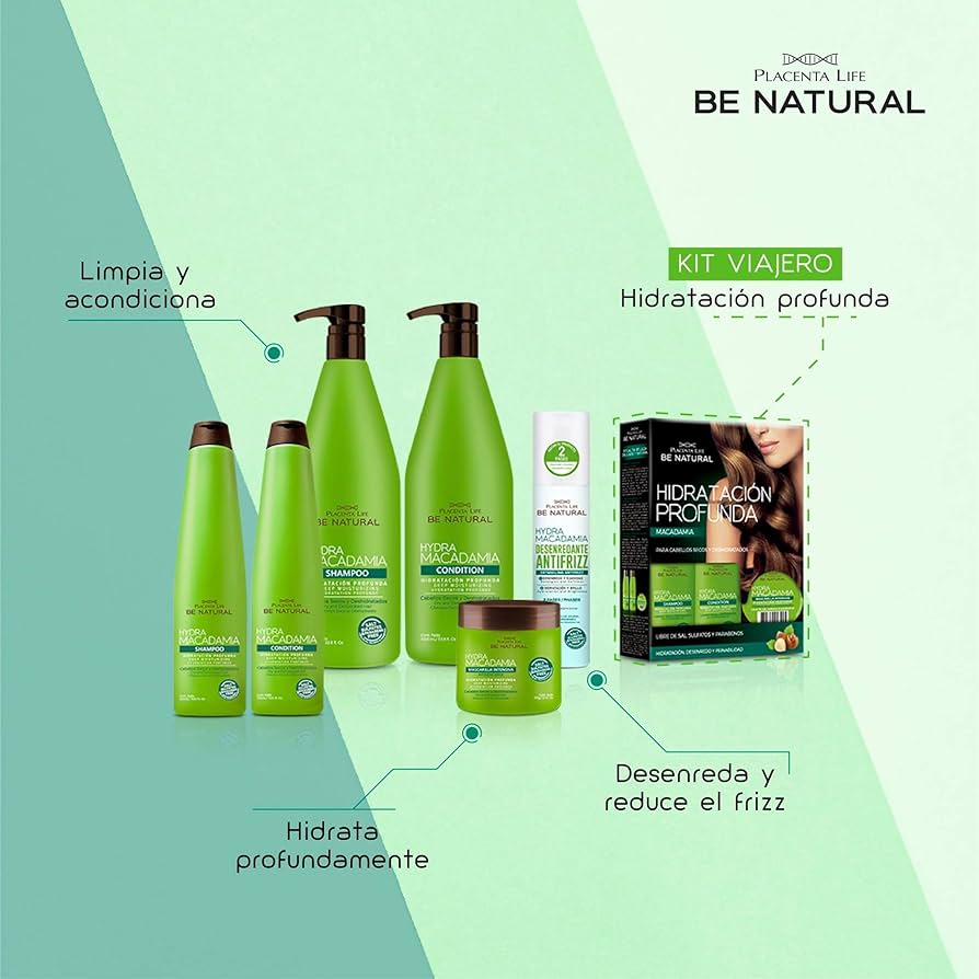 El Acondicionador Hydra Macadamia de Placent Life ofrece una hidratación intensa que revive el cabello reseco y opaco desde la primera aplicación.