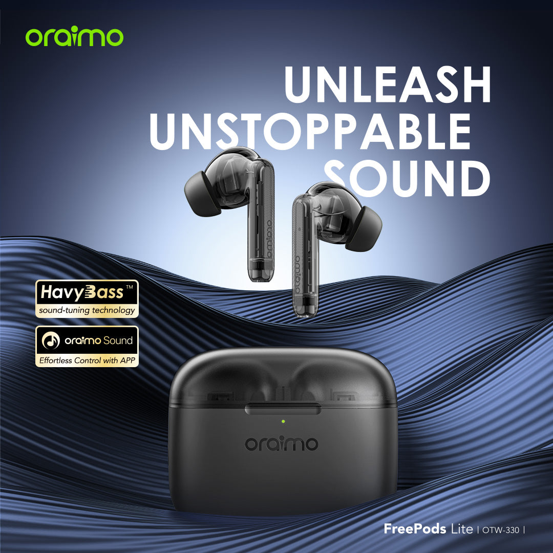 Los Oraimo FreePods Lite OTW-330 son audífonos inalámbricos de alto rendimiento, diseñados para ofrecer sonido claro y conexión estable vía Bluetooth.