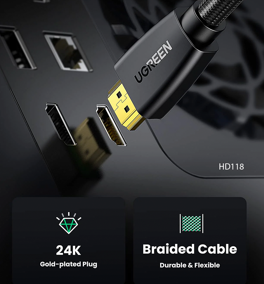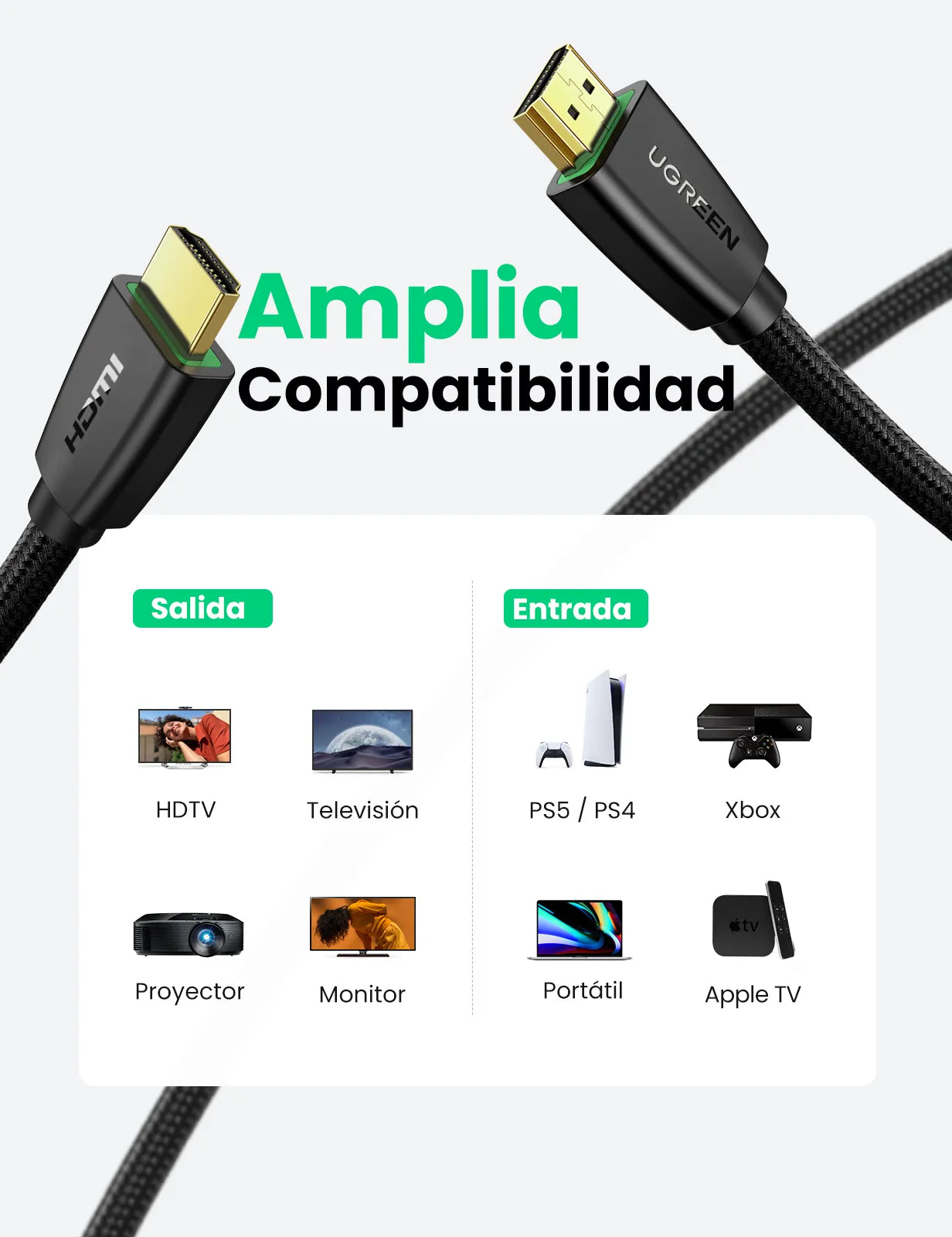 El Cable UGREEN HD118 HDMI 4K de 2 metros está diseñado para ofrecer una transmisión de video y audio de alta calidad, ideal para televisores, monitores, proyectores y consolas de videojuegos.
