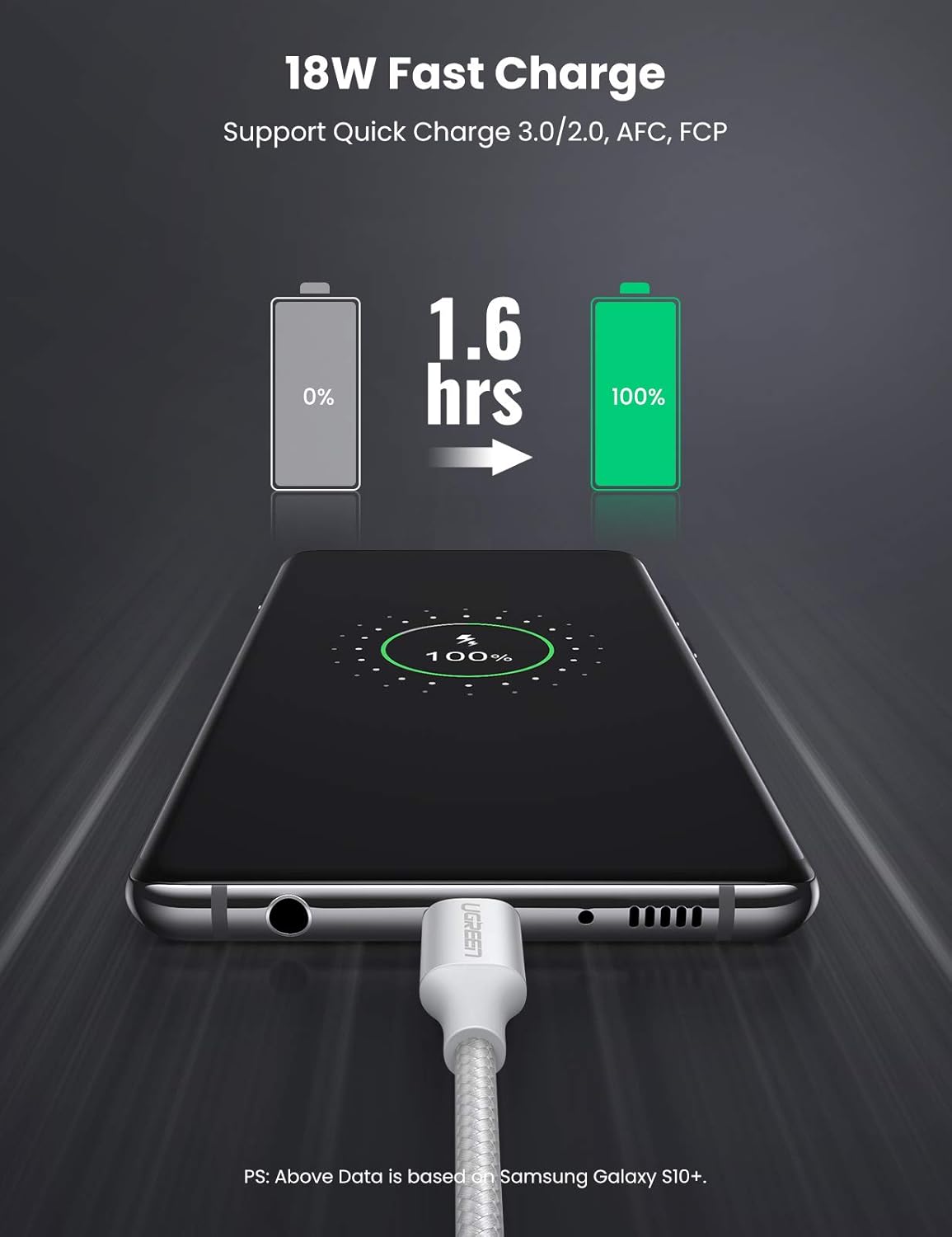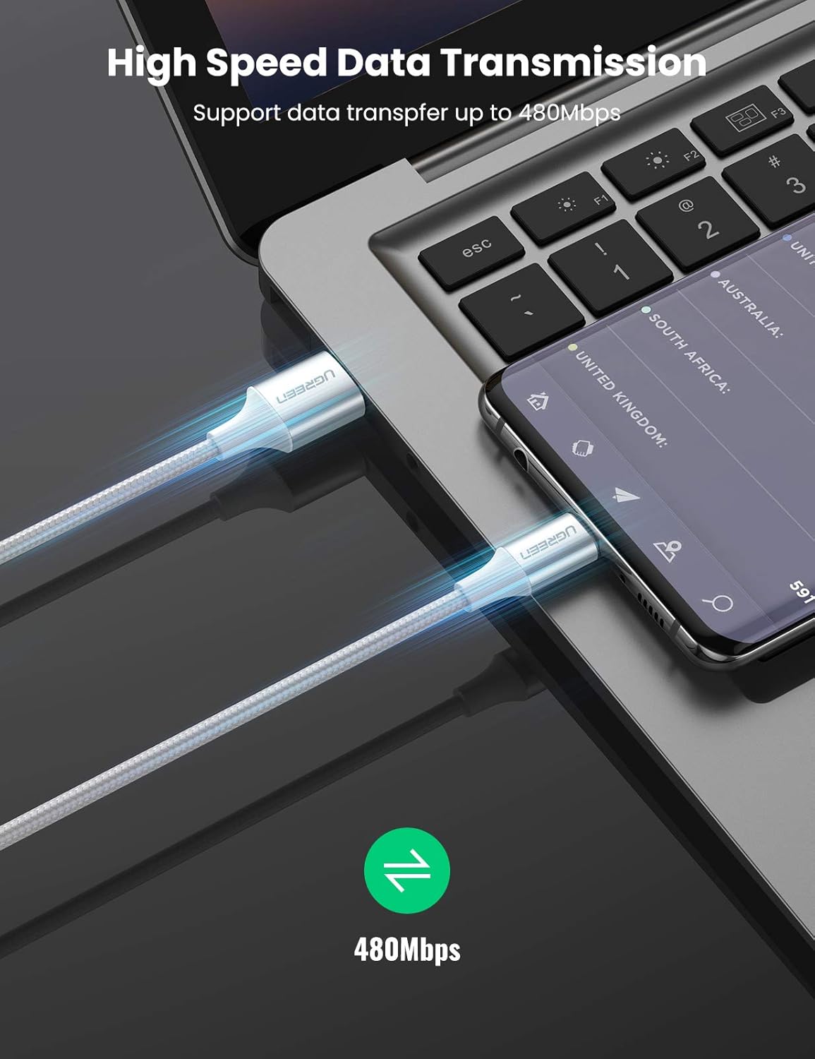El Cable UGREEN US288 USB-A 2.0 a USB-C de 1 metro es una solución confiable para carga y transferencia de datos.