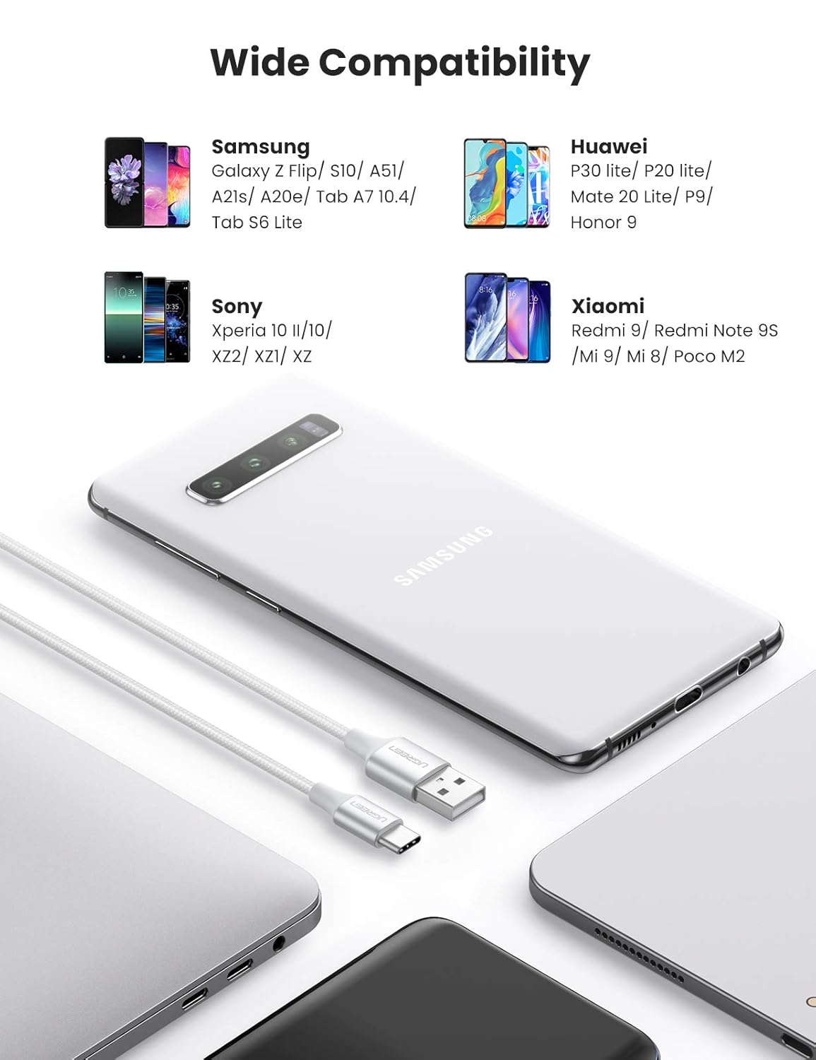 ['Compatible for Samsung Galaxy S10 S10e S10 Plus S9 S8 S8+ Note 9 8, Samsung A50 A30 A20 A40 A60 M40 M20 M30, Galaxy Tab S3 9.7, Samsung Galaxy Fold', 'Compatible for LG Q Stylo 4 Stylo 5, LG G5 G6 G7 G8 G8S ThinQ, LG Q7 V20 V30 V35 V40 V50', 'Compatible for 2018 iPad Pro 11inch and 12.9inch', 'Compatible for GoPro Hero 5, hero 7 black hero 7 white hero 7 silver, hero 6 black, go pro hero 2018', 'Compatible for Motorola One Vision, Moto G7 Power, Moto X4 Z3 Z4 G6, G7 Play, Moto Z', 'Compatible for Nintendo Switch console, Lenovo Zuk Z1, Nokia N1, ZTE Axon 10 Pro, ZTE Blade Z Max, Alcatel 7', 'Compatible for Microsoft Lumia 950, Lumia 950XL, HTC 10 U12+, Huawei P9 Plus, Huawei P9, OnePlus 2, Xiaomi Redmi Note 7', 'Partially compatible for Samsung Galaxy Note 10, Galaxy A70 A80, OnePlus 3 3T 5 5t 6 6t 7 pro, google pixel 2 3 , Pixel XL , pixel 3 xl, Pixel 2 XL, Nexus 5X 6P.'] |