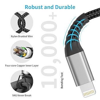 Su diseño duradero y flexible garantiza larga vida útil, ideal para iPhones, iPads y otros dispositivos con puerto Lightning.