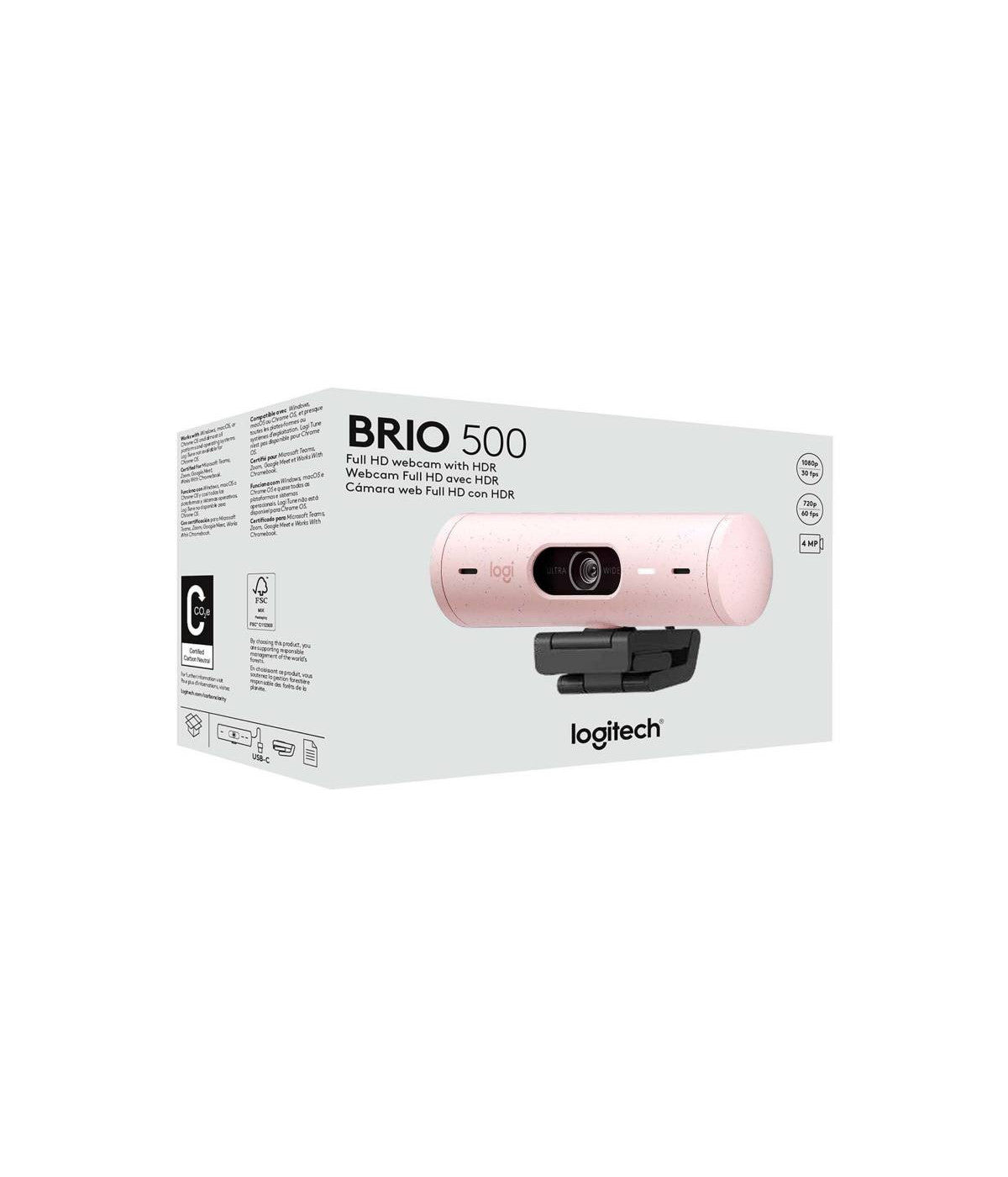 Cámara Web Logitech Brio 500 | Full HD 1080p | Rosado