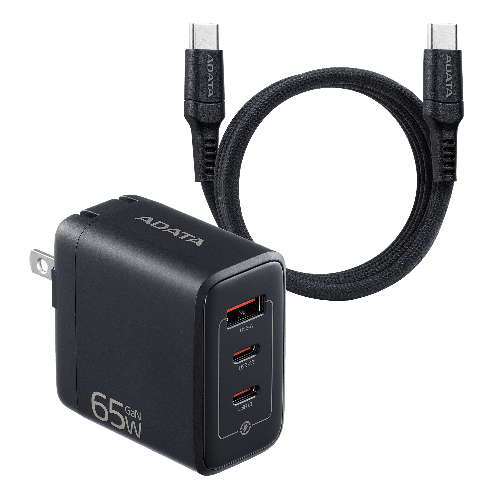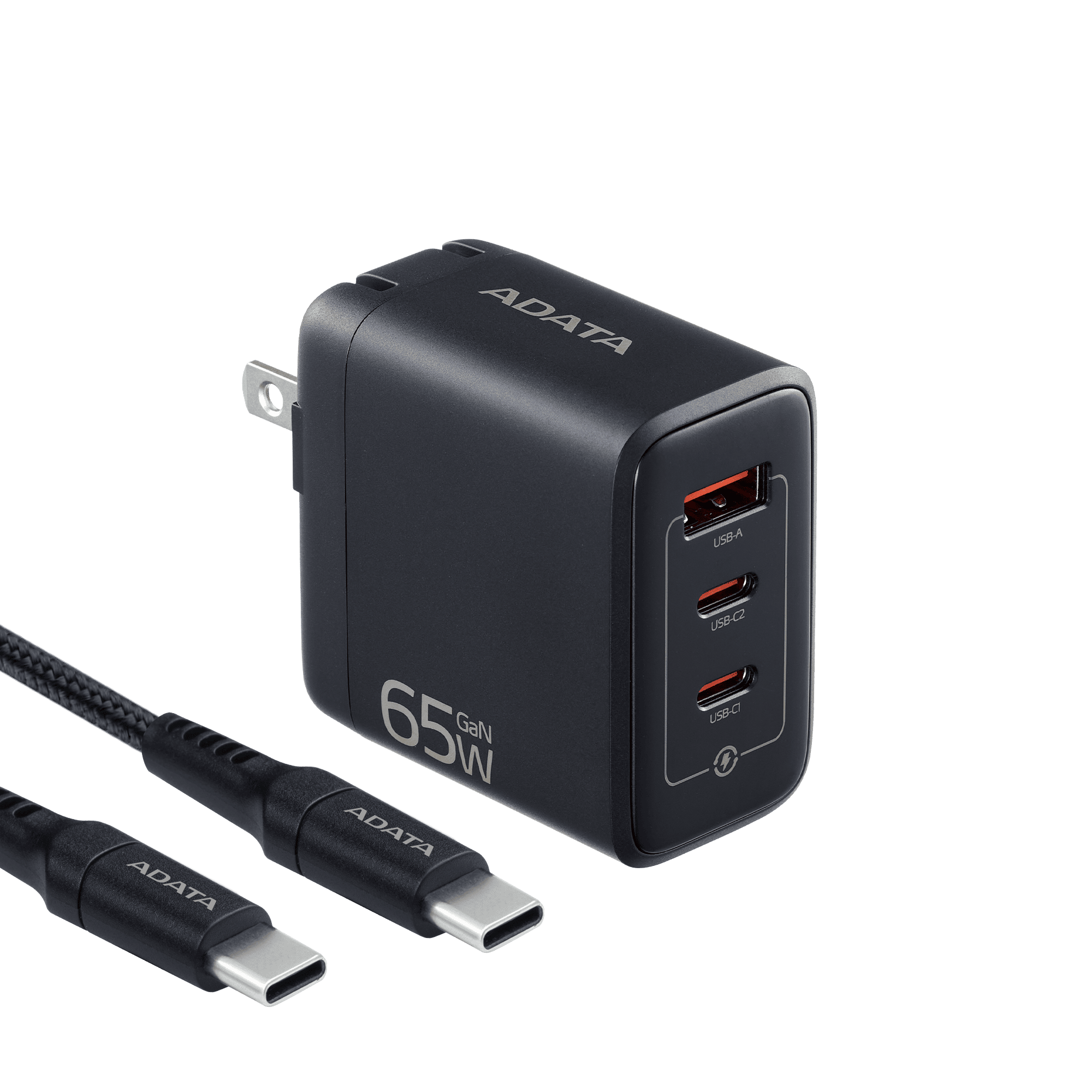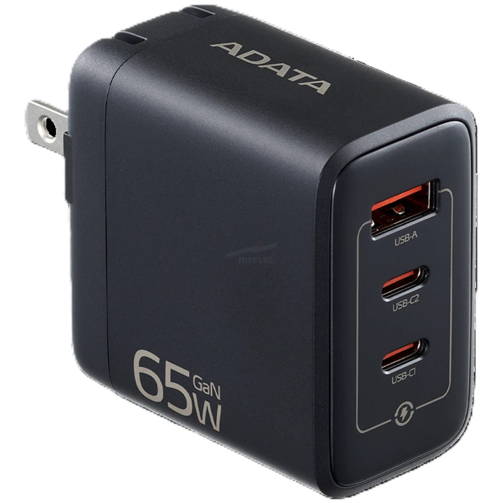 Cargador ADATA CHARGERU-0653-QCPDBK | 65W | 2 Puertos USB-C | 1 Puerto USB-A | Carga Rápida | Enchufe Plegable | Negro