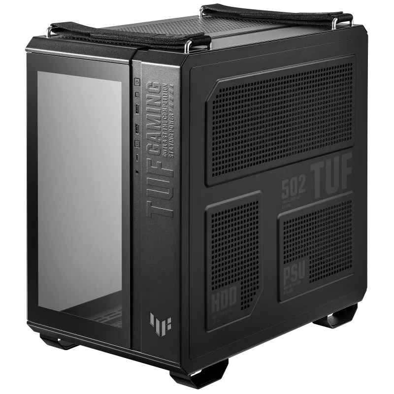 El Case Gaming ASUS GT502 TUF Gaming es una torre diseñada para entusiastas y gamers exigentes, con un diseño moderno y una construcción robusta.