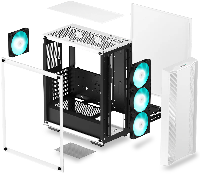 Case Gaming DeepCool CC560 WM V2 | Media Torre | Vidrio Templado Lateral | 4 Ventiladores LED Blanco