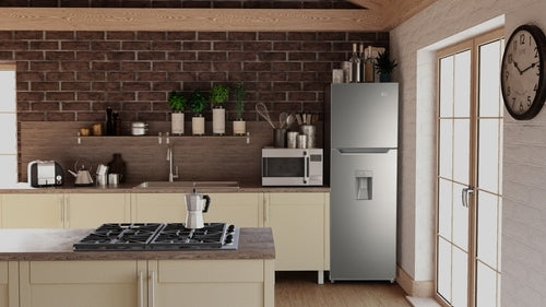 Su diseño Top Freezer ofrece un congelador superior práctico con espacio organizado.