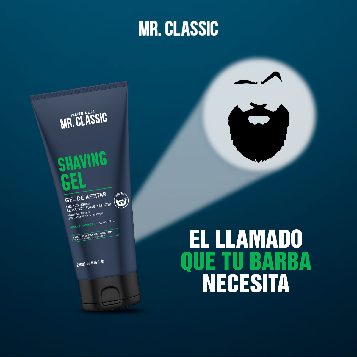 Gel para Afeitar Mr. Classic Placent Life | 200ml | Afeitado preciso y suave para piel sensible