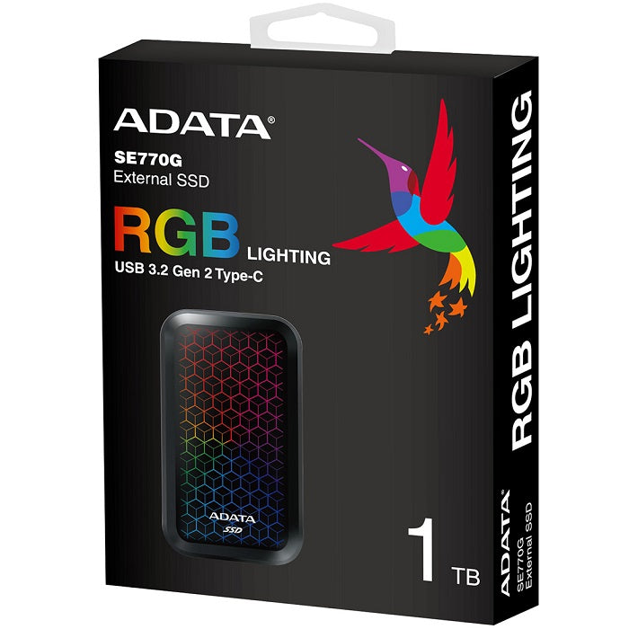 Disco Duro Externo Sólido ADATA SE770G | 1TB | USB 3.2 Gen2 | RGB | Lectura 1000 MB/s | Escritura 800 MB/s | ASE770G-1TU32G2-CBK