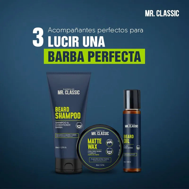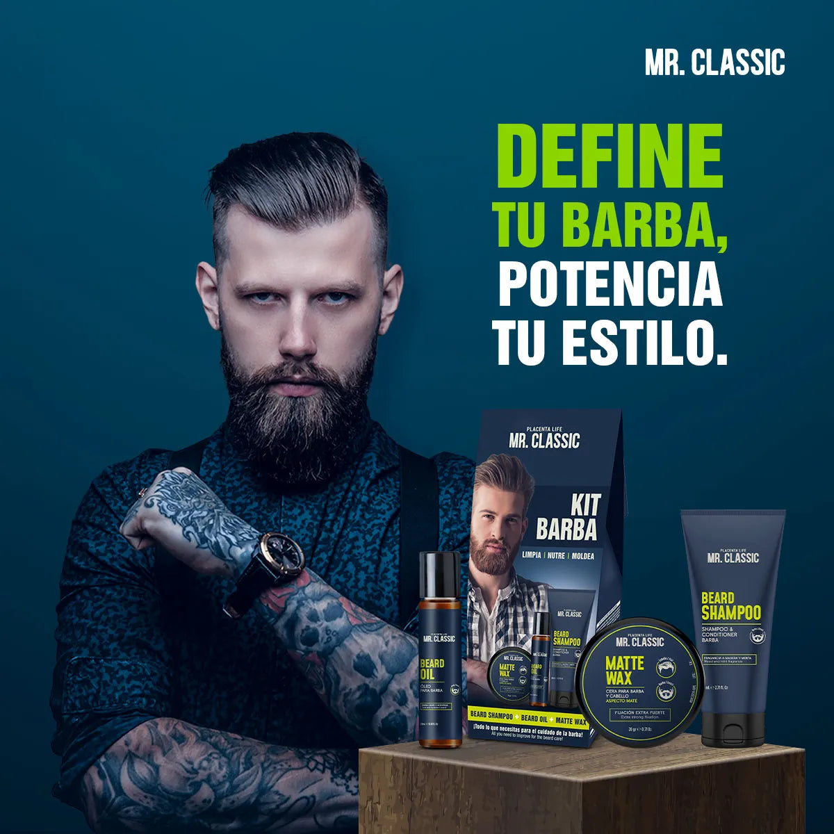 Kit Barba Mr. Classic Placent Life | Para limpiar hidratar y estilizar la barba con estilo profesional