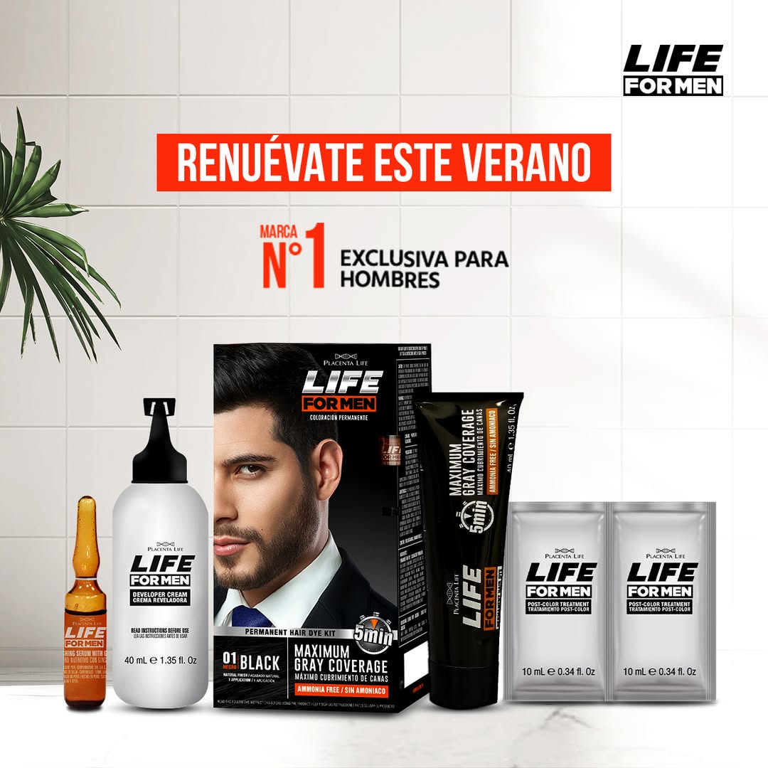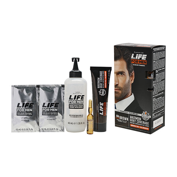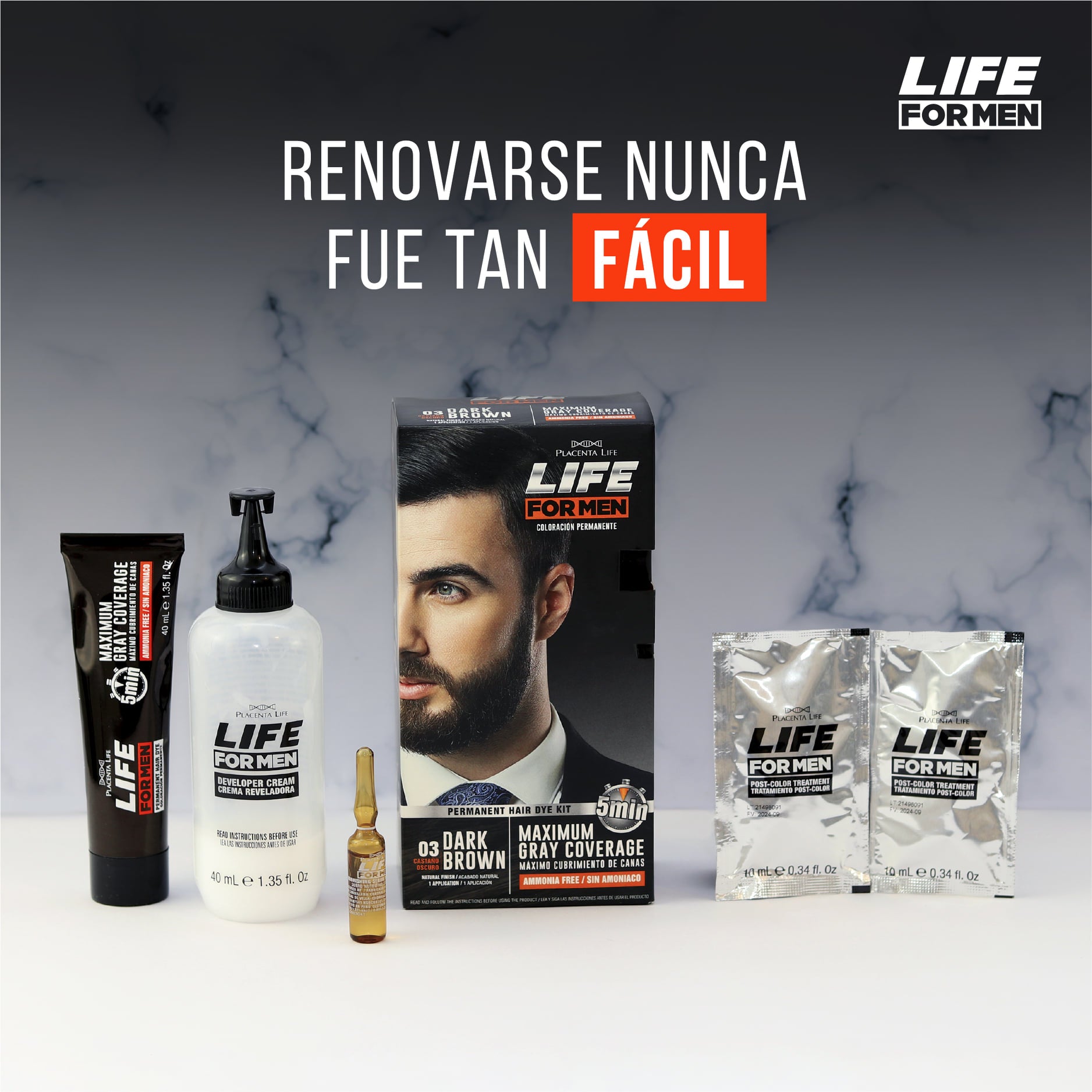 Kit Tinte Castaño Oscuro Hombre Placent Life | Para cubrir canas y lograr un look natural en casa