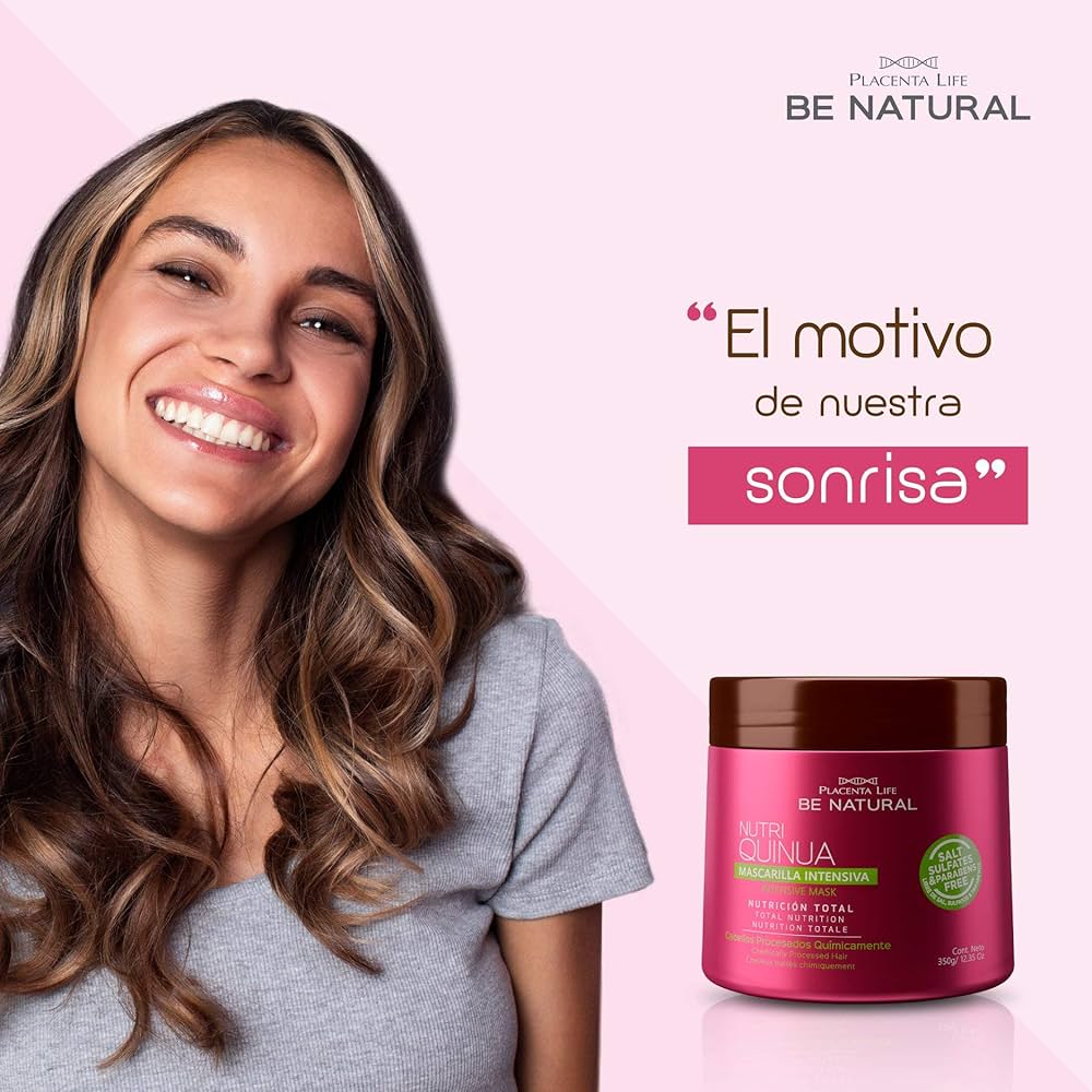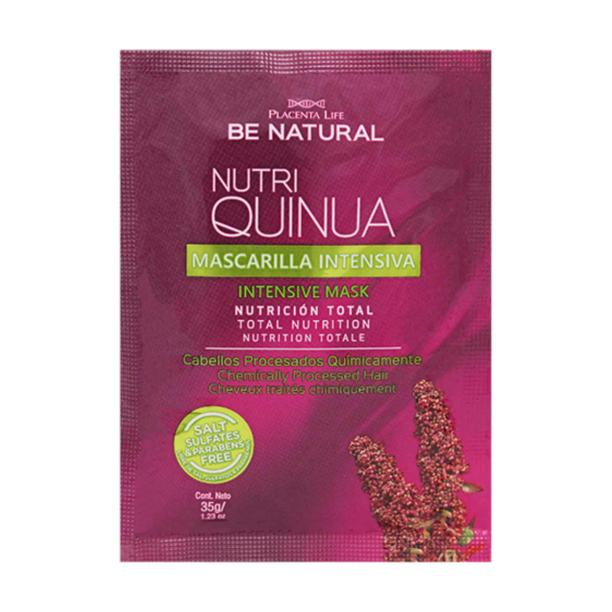 La Mascarilla Nutritiva con Quinua de Placent Life en presentación de 35g ofrece una dosis concentrada de nutrición para el cabello débil o quebradizo.