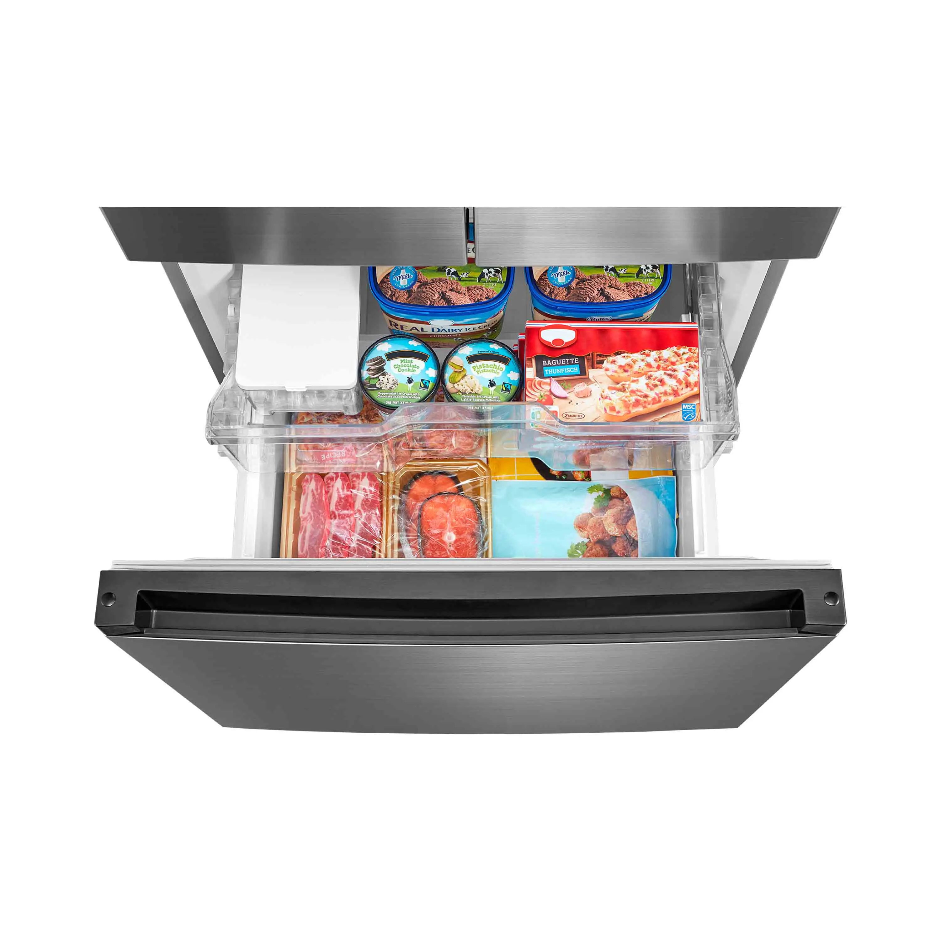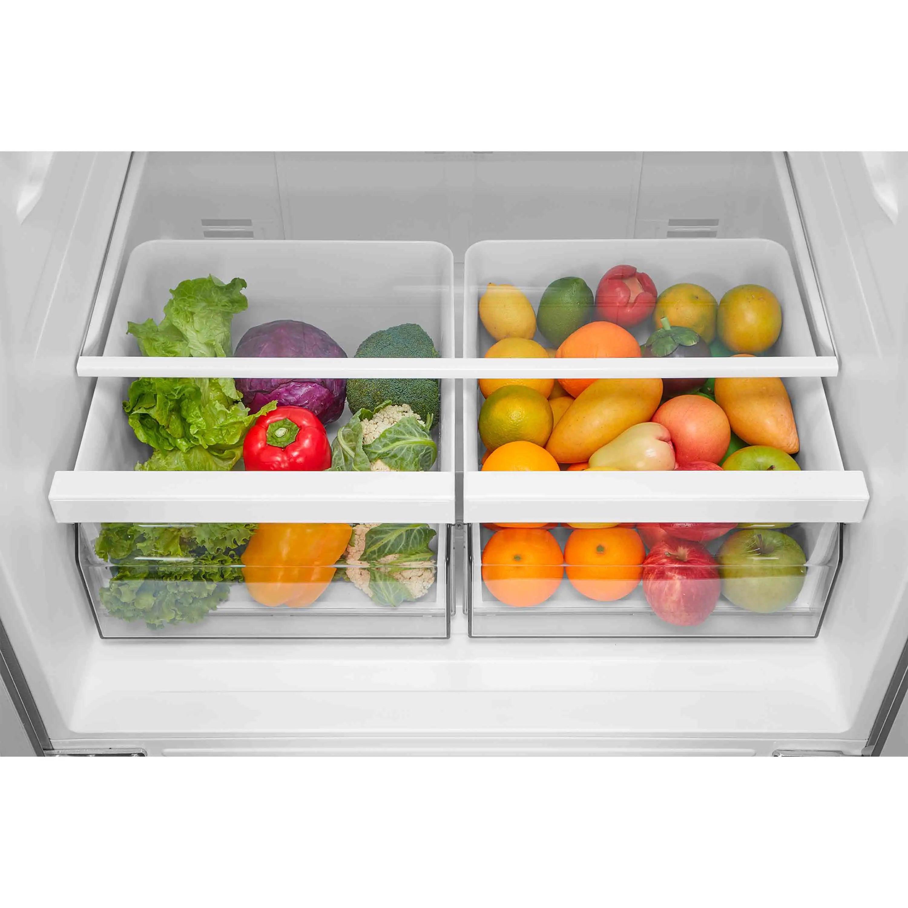 • Diseño French Door: Organización práctica con refrigerador superior y congelador inferior
