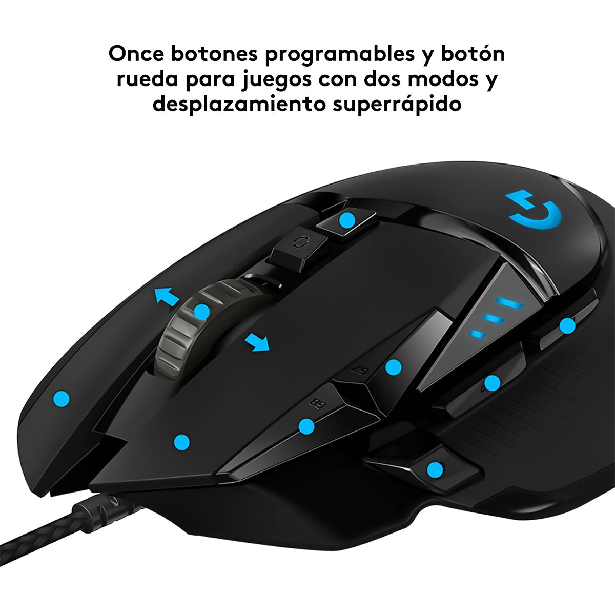 Mouse Gaming RGB Logitech G502 HERO | Alámbrico | Sensor HERO 25K | 11 Botones Programables | RGB