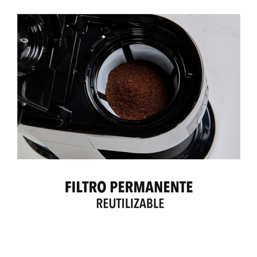 Cuenta con placa calefactora que mantiene el café caliente por hasta 2 horas, garantizando que siempre disfrutes tu café a la temperatura ideal con total comodidad.