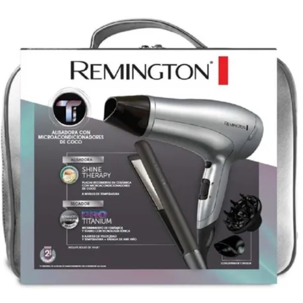 Remington combo secador + plancha de cabello titaniun - S4A500-D3019-F