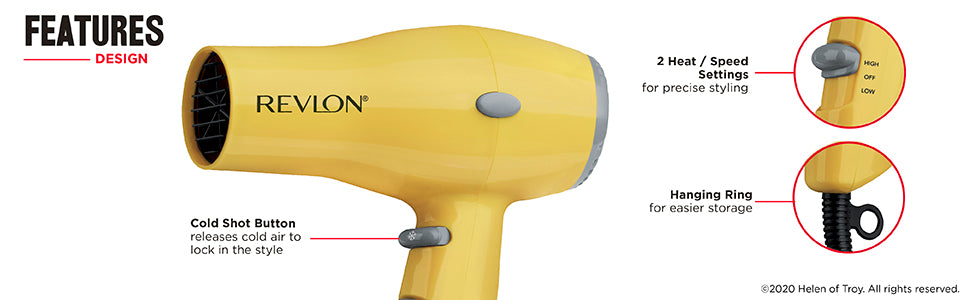 Secadora Style and Go 1875W Revlon Amarilla | Para secar tu cabello con potencia y estilo en cualquier lugar