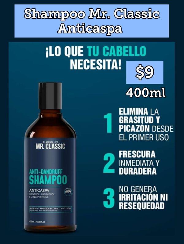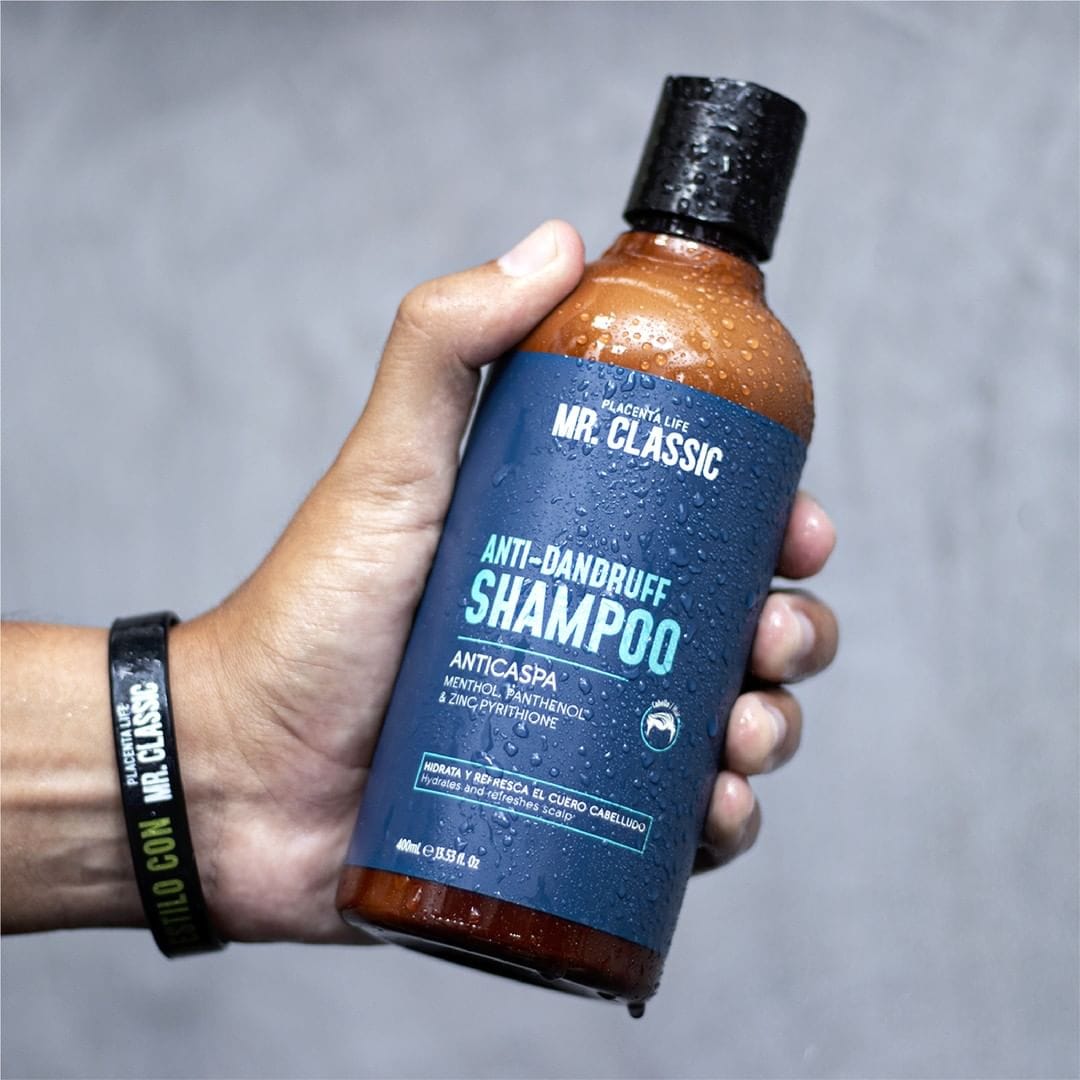 Shampoo Anticaspa Mr. Classic Placent Life | 400ml | Control efectivo de caspa y cuidado del cuero cabelludo irritado