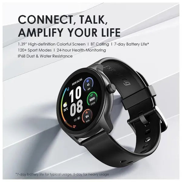 Su diseño cómodo y ligero permite uso prolongado durante todo el día, con notificaciones inteligentes y control de música directamente desde la muñeca.