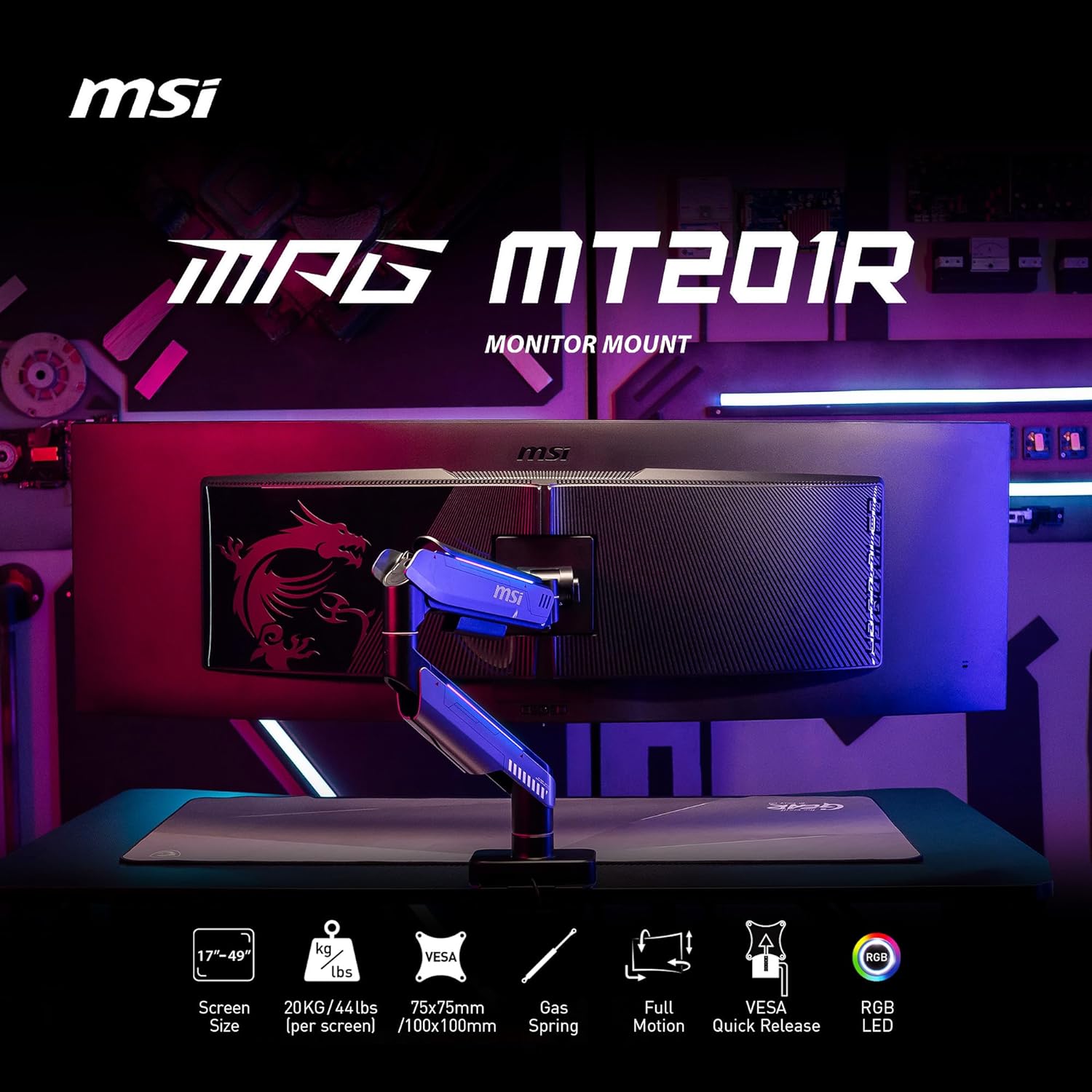 El soporte para monitor MSI MPG MT201R RGB es una opción moderna y funcional para organizar tu espacio de trabajo o gaming.