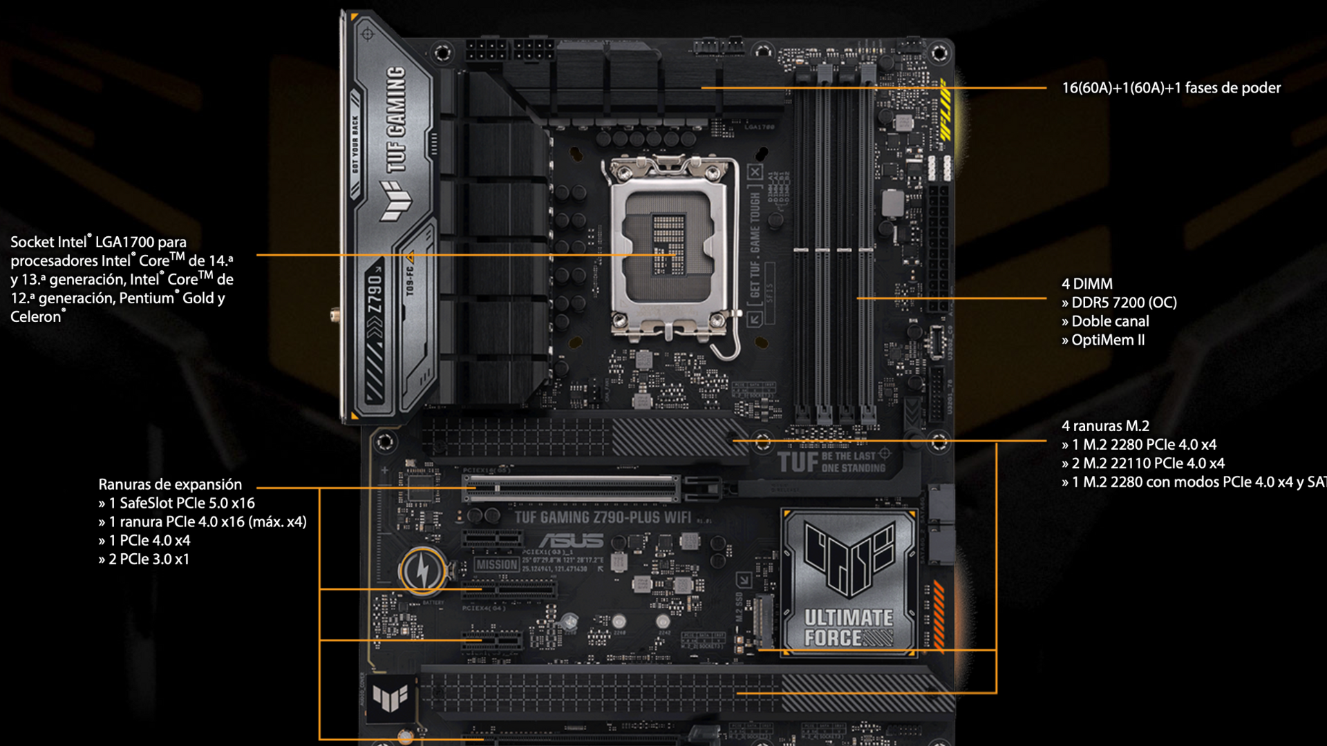 Tarjeta Madre ASUS TUF Gaming Z790-PLUS WIFI | DDR5 | LGA1700 | 90MB1D80-M1AAY0