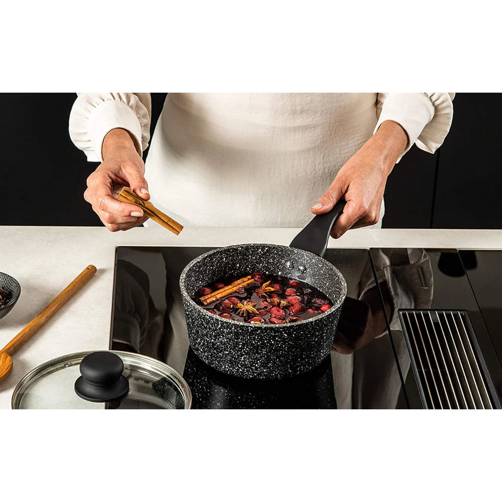 Olla 20 cm Westinghouse WCSP0009020MBB | Con tapa | Acabado mármol negro | Antiadherente