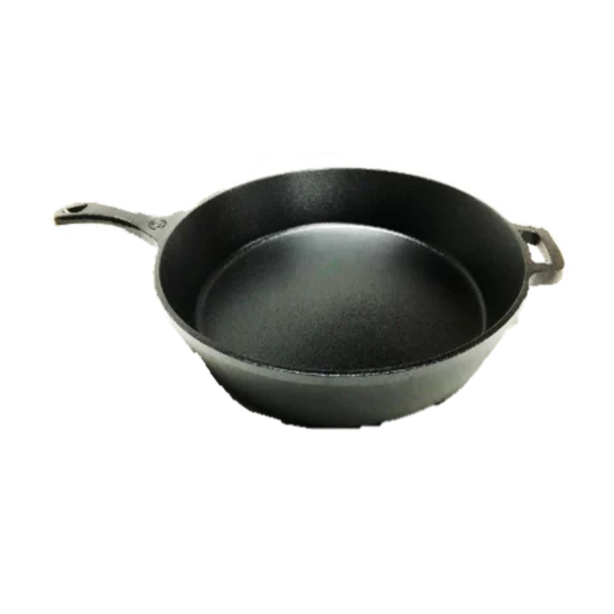 Sartén de hierro fundido precurado 38 cm, listo para usar desde la primera cocción y capaz de alcanzar altas temperaturas para sellar, dorar y cocinar con resultados profesionales. Su superficie antiadherente mejora con el uso y permite un cocinado más natural con menor cantidad de grasa.